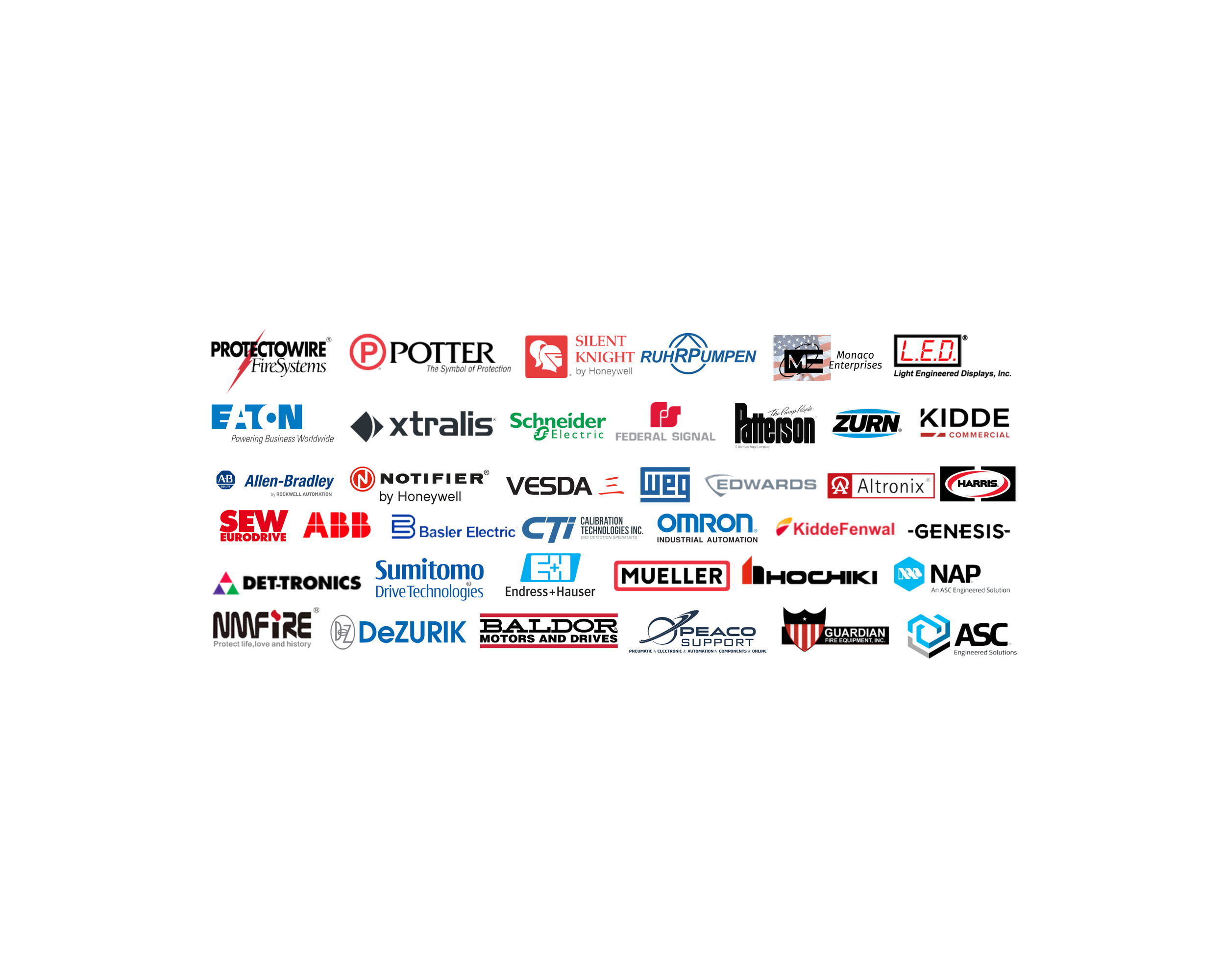 Paneles de control de alarma y detección, detectores de humo, sistemas de Mass Notification, bombas contra incendios, cableados, monitoreo remoto y cualquier dispositivo relacionado a incendios.